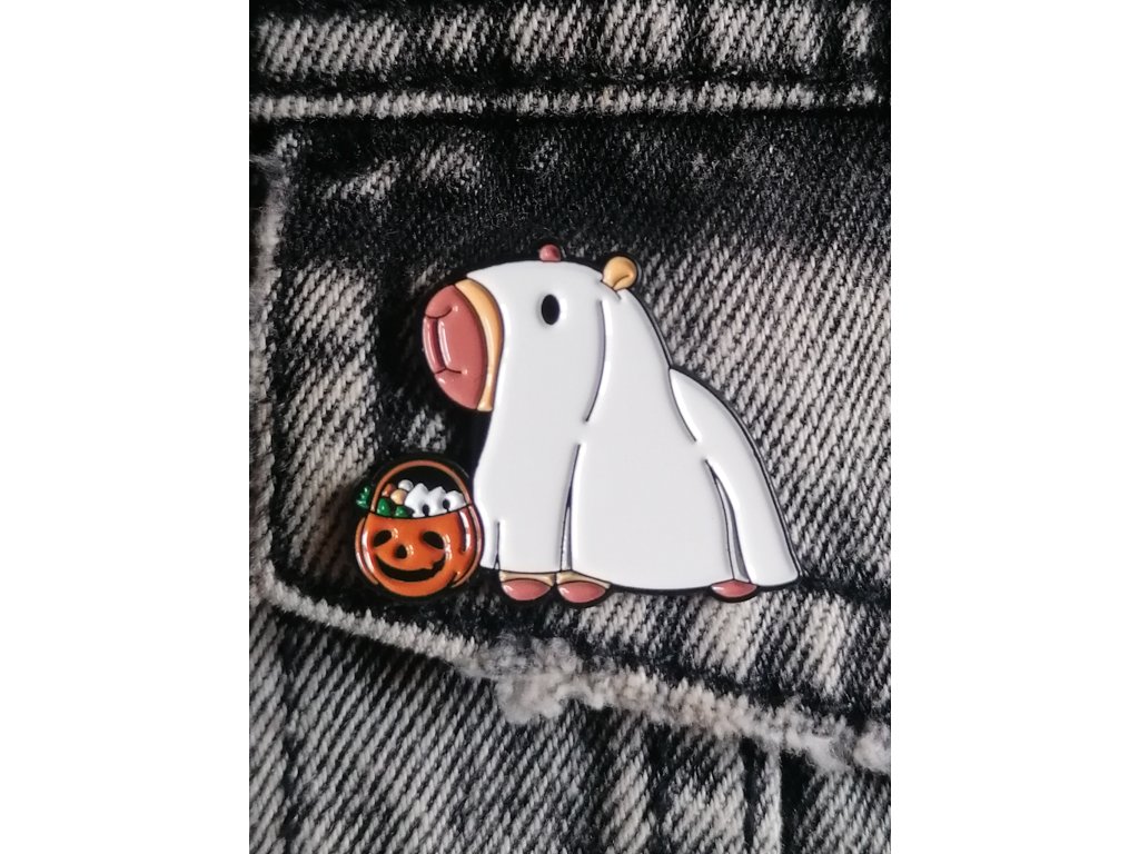 Přemýšlíš, jaký kostým zvolit na halloweenskou párty? Nebo prostě jen miluješ kapybary a tento magický den plný kostýmů, dobrůtek a zábavy? Připni si kapybaru v roztomile děsivém kostýmu ducha a vyrazte společně do ulic.